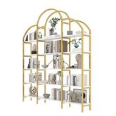 Bibliothèque blanc+doré 5 étagère(s) - 170x190 cm mdf et métal
