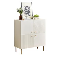 DESIGN ÉLÉGANT – Buffet intemporel aux lignes minimalistes et à la structure finement verticale des portes, lui conférant une allure à la fois moderne et sophistiquée.