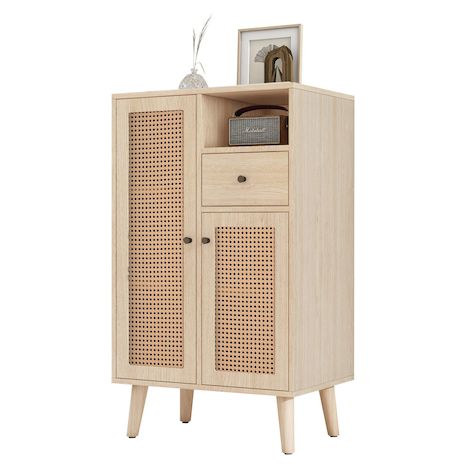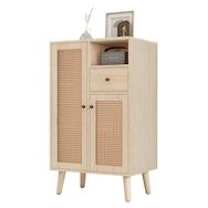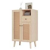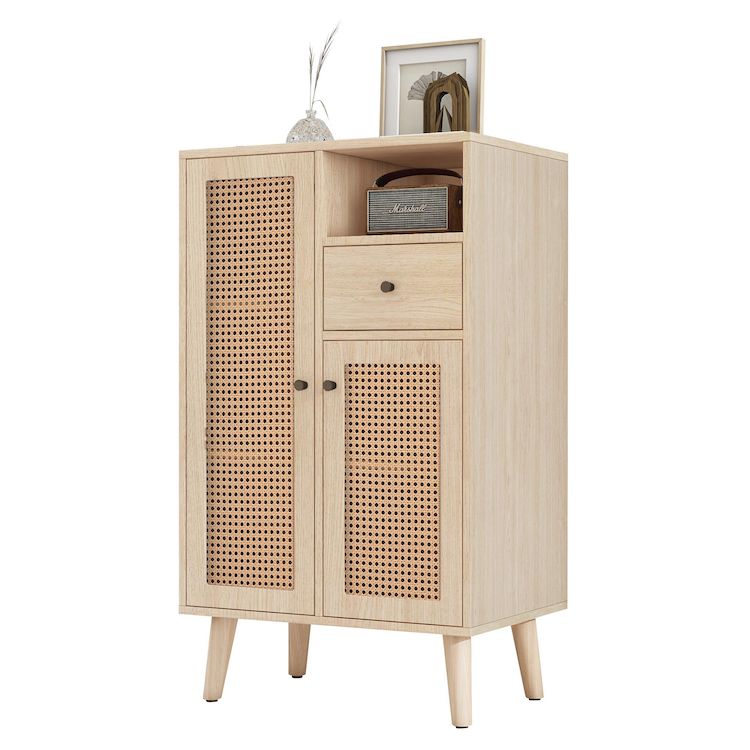 Design élégant : la couleur du bois massif de l'armoire est assortie au rotin PE tissé pour améliorer l'apparence et le design du produit.