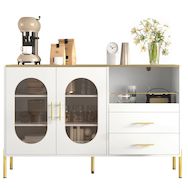 DESIGN MODERNE – Sa finition blanche avec ses poignées et pieds dorés confère à ce buffet un style élégant et intemporel qui s'intègre parfaitement aux styles de vie modernes et luxueux.