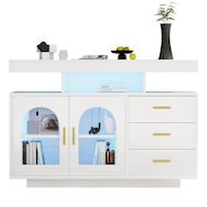 【Utilisation polyvalente】 【Design moderne】 Les panneaux supérieurs et avant du meuble bar sont finis en blanc brillant, créant un style simple et élégant. La porte du buffet est en acrylique, permettant de voir facilement son contenu. Il peut servir de meuble de cuisine ou de meuble bar/buffet dans le salon.