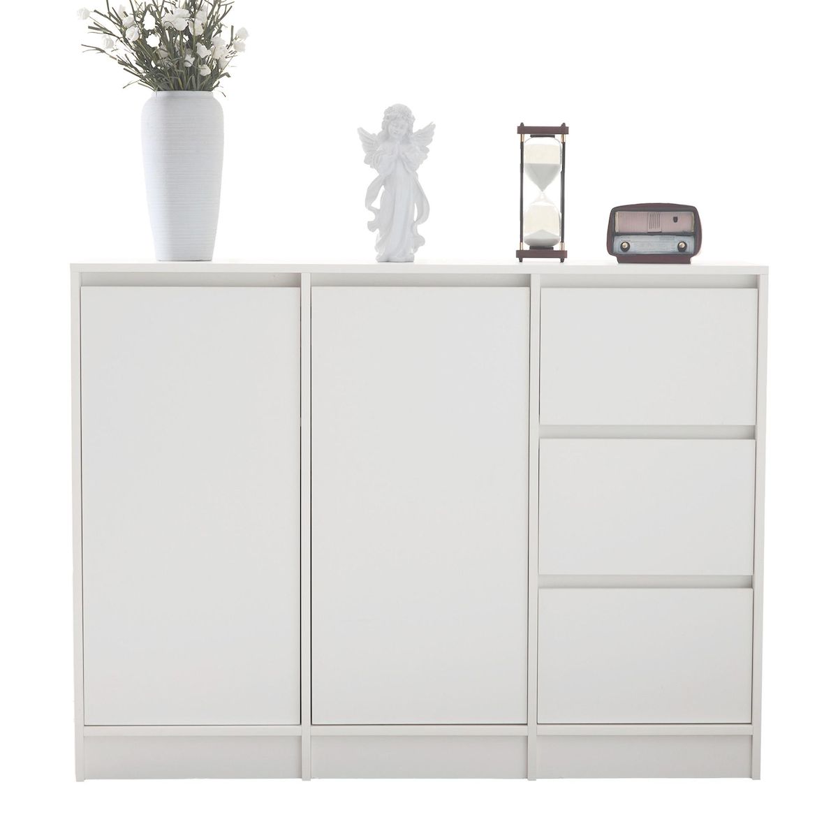 Sécurité : des ferrures et des panneaux de particules de haute qualité sont utilisés. Les charnières sont équipées d'une fonction d'amortissement pour éviter de se pincer les doigts lors de l'ouverture et de la fermeture. Le kit anti-basculement inclus peut être solidement fixé au mur pour offrir une stabilité supplémentaire et vous permettre une utilisation sans souci.