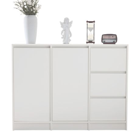 Buffet 2 porte(s) 3 tiroir(s) - 120 cm blanc panneaux de particules