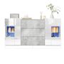 Buffet 2 porte(s) 3 tiroir(s) - 140 cm blanc+gris led mdf