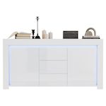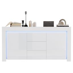 Buffet 2 porte(s) 3 tiroir(s) - 140 cm blanc led mdf