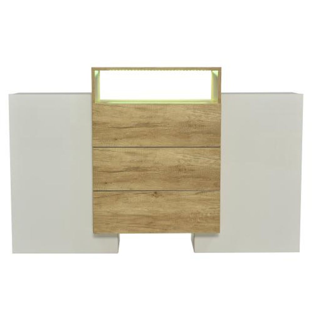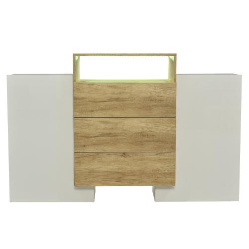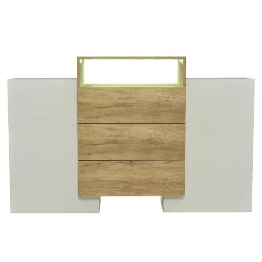 Buffet 2 porte(s) 3 tiroir(s) - 140 cm blanc+naturel led mdf