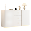 Armoire d'appoint décorative : cette armoire d'appoint présente des rayures verticales exquises sur 2 portes, ajoutant un style bohème unique à votre maison. En combinaison avec des poignées dorées et des bases de tiroirs, le buffet est élégant et extraordinaire.