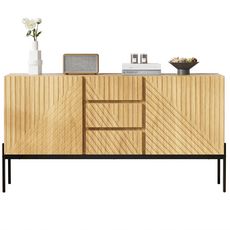 Buffet 2 portes 3 tiroirs - 150cm naturel panneaux de particules