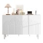 Capacité de charge fiable : Fabriqué en Panneau composite de fibres de bois à densité, la capacité de charge totale recommandée est de 80 kg. Que vous y placiez des décorations, des livres ou des objets légèrement plus lourds, ce buffet offre une stabilité et une durabilité optimales.