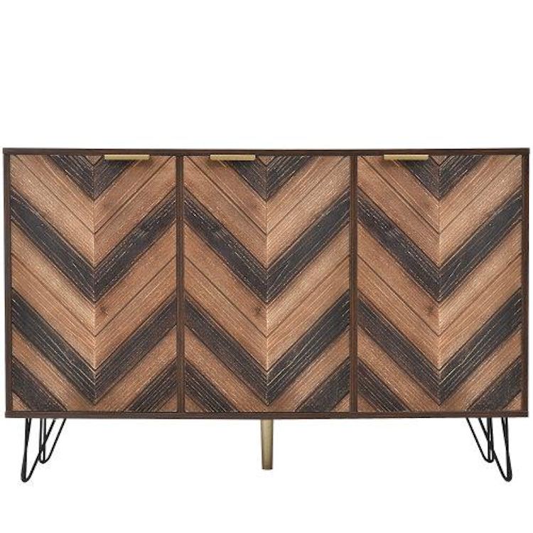 Autre point fort : les pieds en fer robustes qui confèrent au buffet sa stabilité et une touche particulière. Ils assurent la stabilité du meuble sur le sol tout en créant un effet de contraste intéressant.