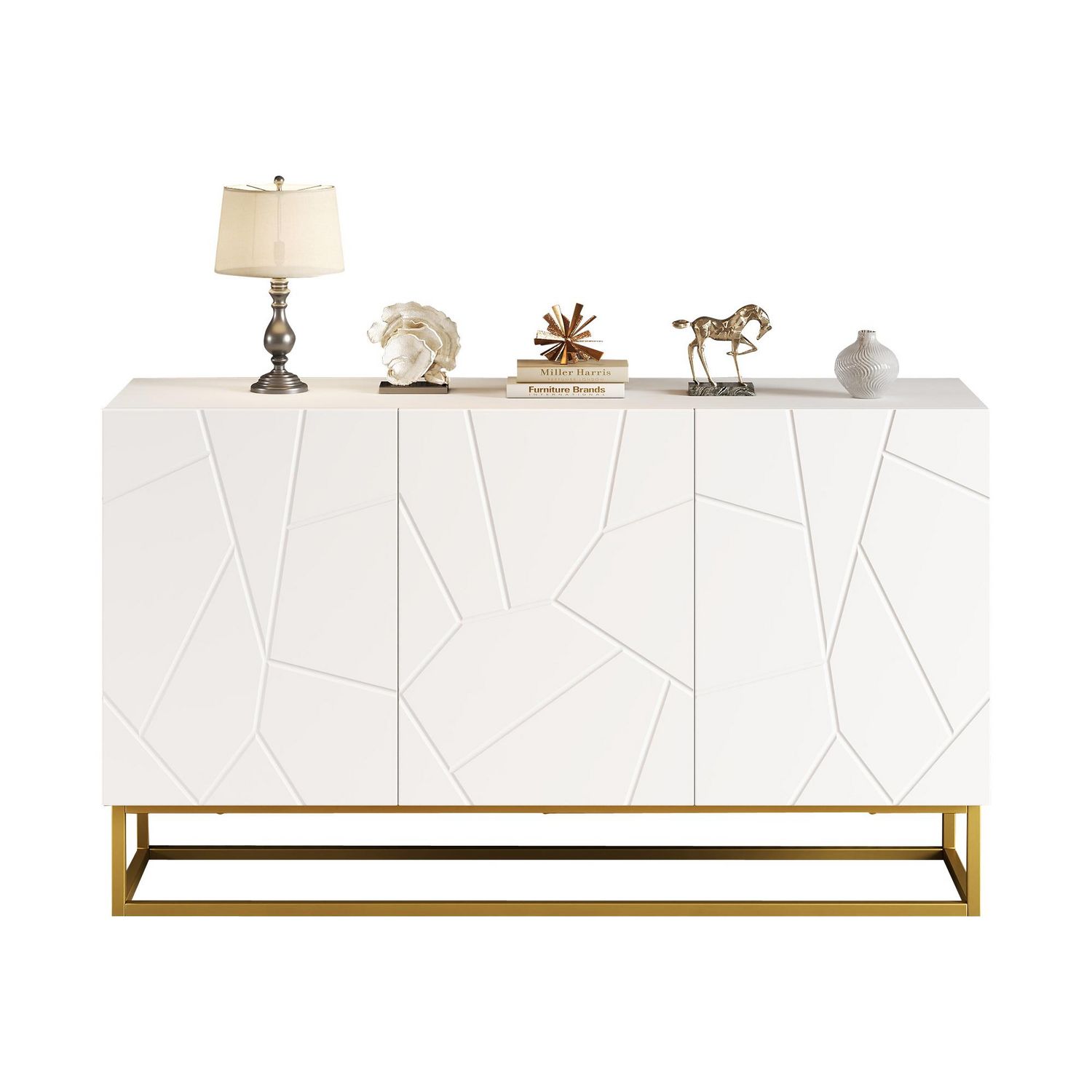 Structure métallique : La base et les pieds uniques en fer poli confèrent au buffet un aspect particulièrement luxueux tout en garantissant une excellente stabilité, durabilité et résistance à la rouille.
