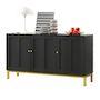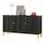 Matériaux et savoir-faire de haute qualité : ce buffet est fabriqué en Panneau composite de fibres de bois à densité de haute qualité et conçu pour la durabilité et la stabilité. Les poignées en laiton sont galvanisées et offrent une finition polie qui complète les pieds en métal robustes et offre un support solide. Avec une capacité de charge de 40 kg et des étagères réglables pouvant supporter jusqu'à 15 kg chacune, répondant avec précision à tous vos besoins de stockage.