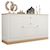 Poignées dorées arrondies : Les poignées dorées arrondies rehaussent l'esthétique du meuble et créent un contraste luxueux avec le piètement en bois blanc. Elles offrent une prise en main confortable.