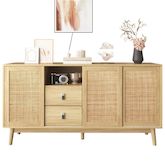Grand espace de rangement : Le buffet offre 2 tiroirs et 3 compartiments derrière les portes coulissantes pour suffisamment d'espace pour ranger vos objets.