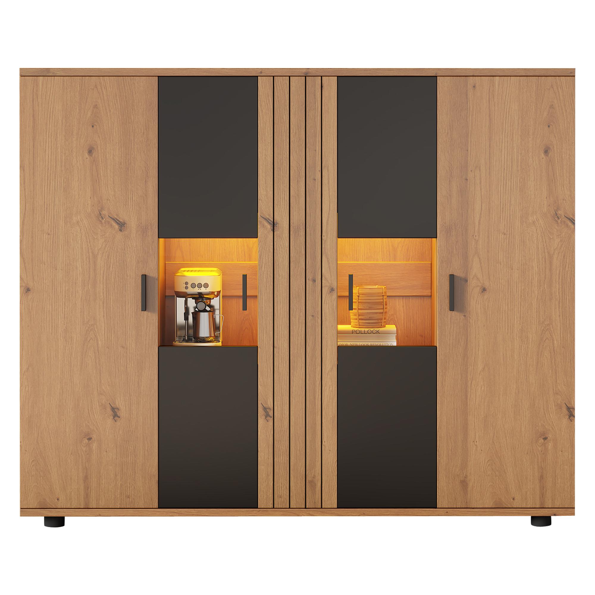 Buffet 4 porte(s) 0 tiroir(s) - 140 cm naturel+noir led panneau de particules
