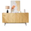 Design élégant : les portes des armoires sont réalisées avec des incrustations de haute qualité et le design des bandes métalliques confère au produit une touche design particulière. Ce buffet est idéal pour le salon ou la salle à manger et donne une sensation de luxe et d'élégance.