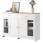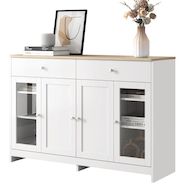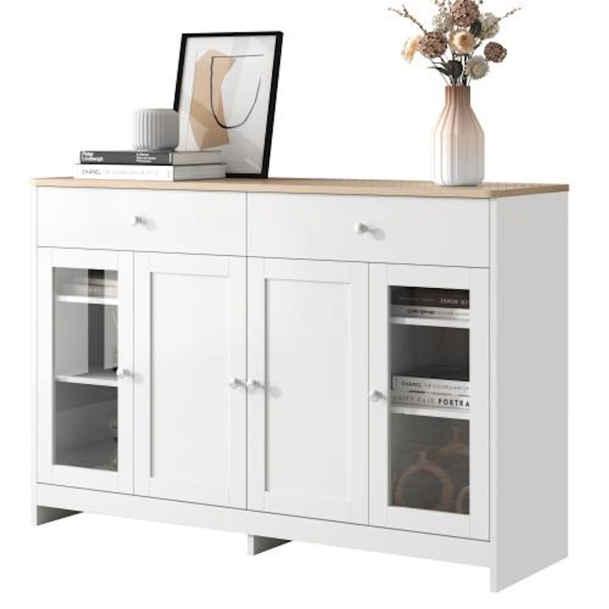 Finition soignée : Le buffet présente une finition bois sur le dessus et des côtés blancs. Les poignées argentées ajoutent une touche d'élégance.