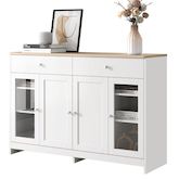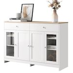 Rangement pratique : Avec deux tiroirs, quatre portes et des étagères réglables, ce buffet offre un espace généreux pour votre vaisselle et vos ustensiles de cuisine. Tout est rangé avec soin et à portée de main.