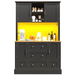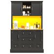 Buffet de cuisine 4 portes 3 tiroirs - 115 cm noir led mdf