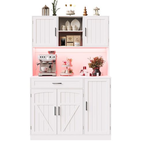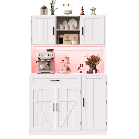 Buffet de cuisine 5 portes 1 tiroir - 110 cm blanc led mdf