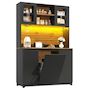 Espace de rangement généreux : Grâce à ses multiples compartiments, l'étagère supérieure ouverte est idéale pour ranger petits contenants légers et aliments. Le compartiment de rangement séparé, doté de portes en acrylique, offre un rangement pratique pour les objets rarement utilisés. La partie centrale ouverte est équipée d'un support à verres, idéal pour exposer cafetières, vases, verres à vin, etc., tout en offrant un accès facile.
