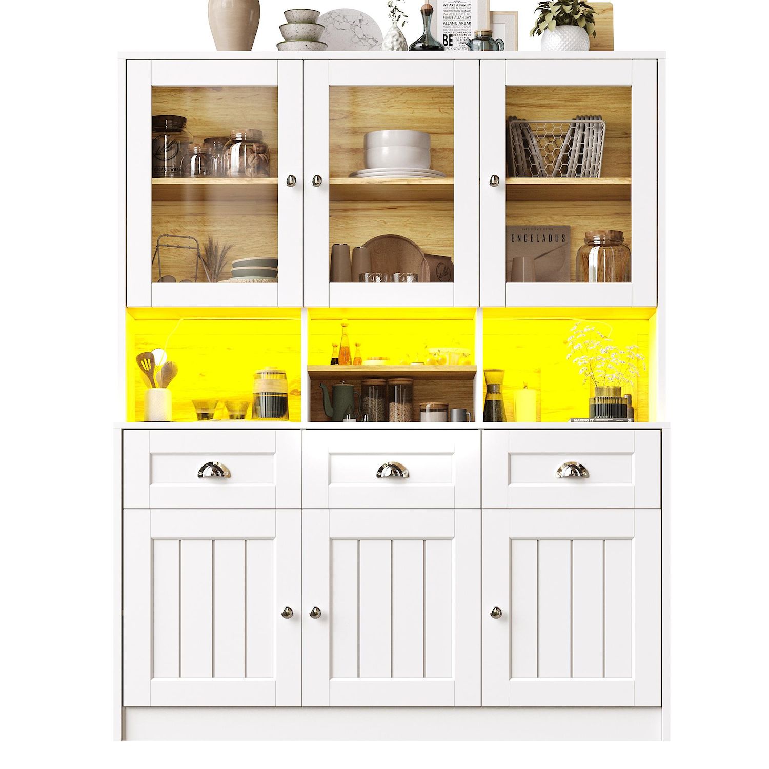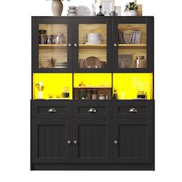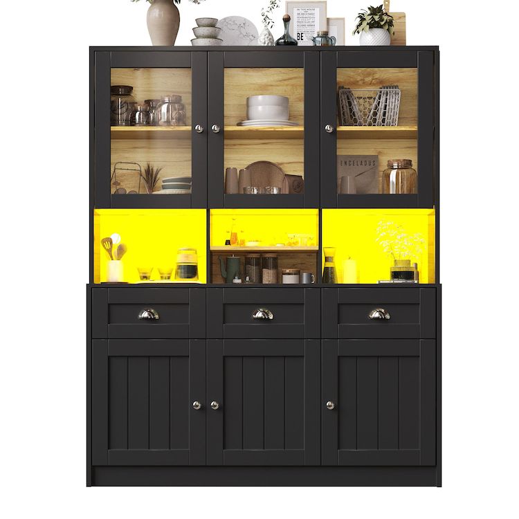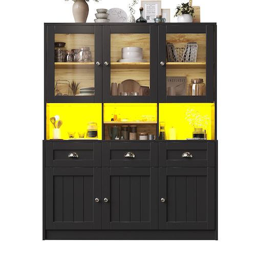 Espace de rangement pratique : Trois tiroirs et six armoires avec portes pour répondre à divers besoins de rangement, ainsi que des étagères réglables, vous permettent d'aménager l'espace selon vos besoins. Le milieu est vide, vous permettant de ranger facilement vos essentiels du quotidien et de profiter pleinement de votre confort.