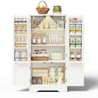Structure stable et pratique : La base élargie augmente la capacité de charge, tandis que le dispositif anti-basculement à l'arrière améliore la sécurité. Une fermeture magnétique assure une fermeture étanche à la poussière et un rangement ordonné. Le dessus de l'armoire offre de l'espace pour les appareils électroménagers, les plantes, etc. afin de maximiser l'utilisation de l'espace.