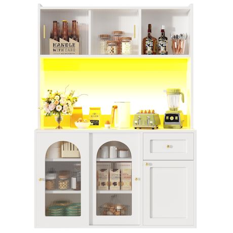 Espace de rangement pratique : Ce meuble de cuisine offre un espace de rangement généreux avec des étagères réglables, vous permettant d'accueillir confortablement des objets de différentes tailles. Le large plan de travail offre un espace généreux pour les appareils électroménagers, vous permettant de dire adieu au désordre et d'obtenir facilement une organisation optimale dans votre cuisine.