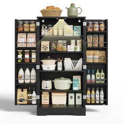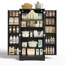 Rangement spacieux et compartimenté : Équipée d'une étagère réglable en hauteur ou amovible pour un rangement flexible des aliments, de la vaisselle, des appareils électroménagers ou des épices. L'étagère au-dessus de la porte offre un espace de rangement supplémentaire pour les épices, les boissons et autres petits objets.