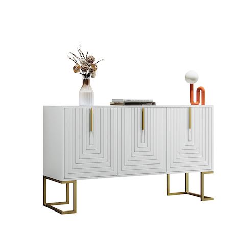 Simplicité moderne : ce buffet allie parfaitement esthétique et praticité. La porte de l'armoire présente une texture exquise en forme de U qui complète le style moderne et montre une esthétique d'espace rafraîchissante et concise, ajoutant une atmosphère à la mode à la vie. Son design minimaliste et ses lignes douces le rendent idéal pour tout intérieur moderne, conférant à la pièce un charme unique et particulier.