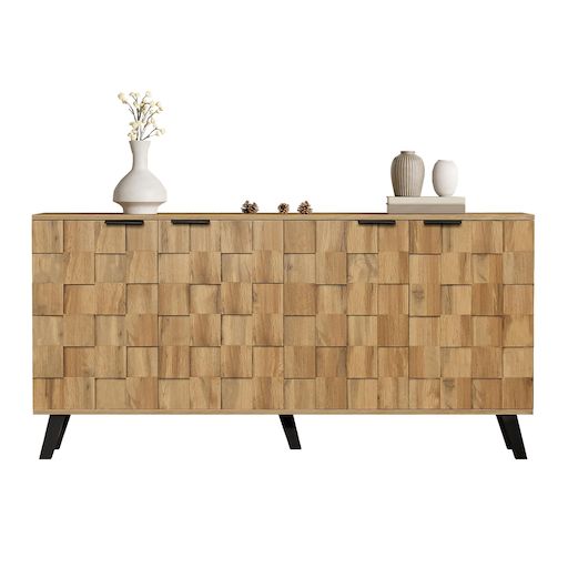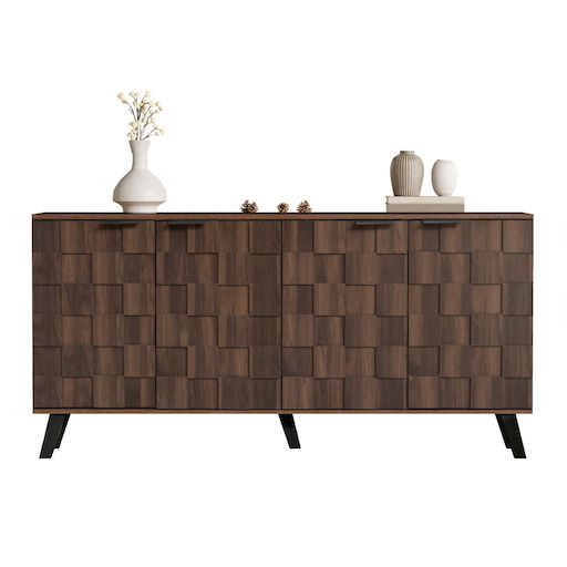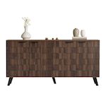 DESIGN ÉLÉGANT : Les portes aux motifs géométriques texturés, complétées par des poignées en métal noir et des pieds de table noirs, créent une esthétique moderne adaptée à de nombreux styles de maison.CONSTRUCTION ROBUSTE : Des pieds robustes et des matériaux durables assurent stabilité et durabili