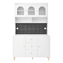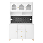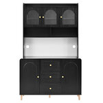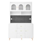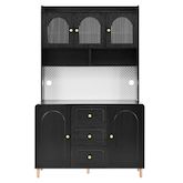 Rangement polyvalent : Cette armoire offre un système de rangement organisé grâce à ses différents compartiments. La porte du réfrigérateur, associée à des étagères intérieures réglables en hauteur, permet une adaptation flexible à différents besoins de rangement. Trois tiroirs spacieux peuvent être organisés selon vos envies pour les aliments, la vaisselle et bien plus encore.