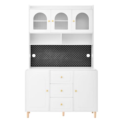 Conception ingénieuse : cette armoire haute est dotée d'un panneau perforé intégré, idéal pour ranger les ustensiles de cuisine tels que ciseaux, ouvre-bouteilles, cuillères doseuses, éplucheurs et pinces. Grâce à des trous régulièrement espacés et des crochets modulables, l'espace de rangement s'adapte facilement à la taille des outils et aux habitudes d'utilisation.