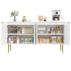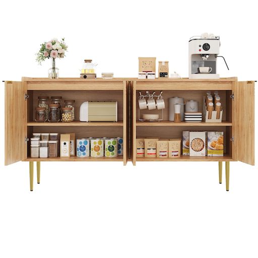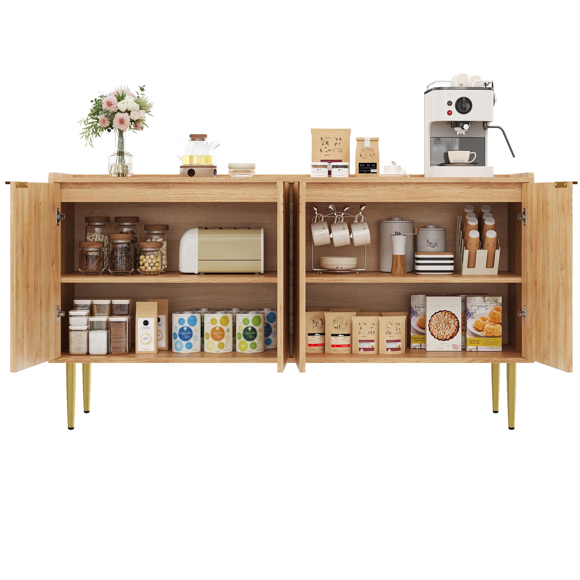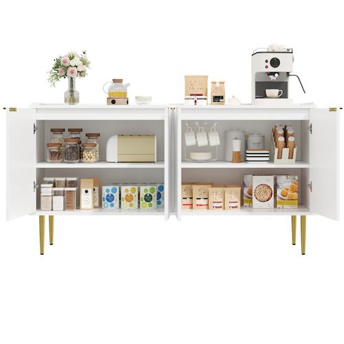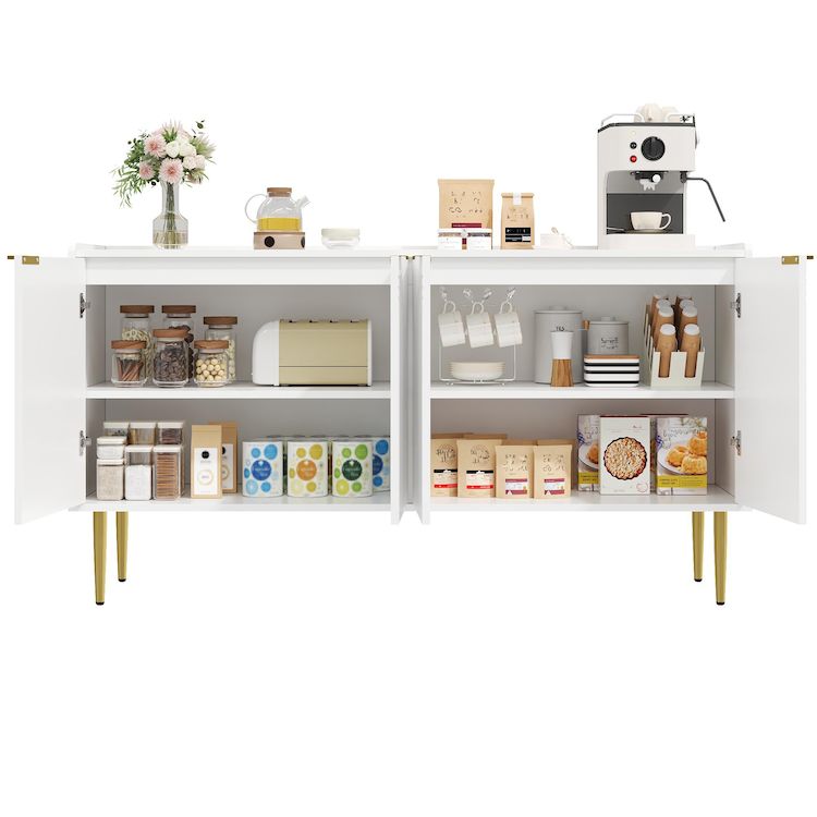 Espace de rangement généreux et modulable : Les quatre portes offrent un espace de rangement important. L'agencement intérieur bien pensé, avec ses étagères réglables, vous permet d'adapter le rangement à vos besoins.