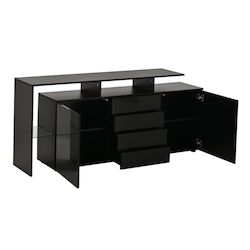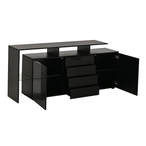 [Grand espace de rangement] : Ce buffet moderne est doté d'un placard à une porte avec étagères dissimulées, offrant un espace de rangement généreux pour tous vos objets du quotidien.
