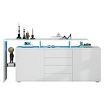 [Construction de haute qualité] : Ce buffet est fabriqué en panneaux de particules E1 de 15 mm et est conçu pour durer. La façade du meuble, y compris les portes et les façades des tiroirs, présente une finition brillante qui ajoute une touche d'élégance moderne. Le reste du meuble a une texture mate, créant un contraste élégant. Sa construction robuste garantit sa durabilité et sa longévité.