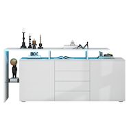 Éclairage d'ambiance LED : Équipé de bandes lumineuses LED contrôlables via une application pour smartphone, ce meuble vous permet d'ajuster l'éclairage selon vos envies et de créer facilement une ambiance chaleureuse ou froide dans votre salon.