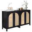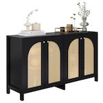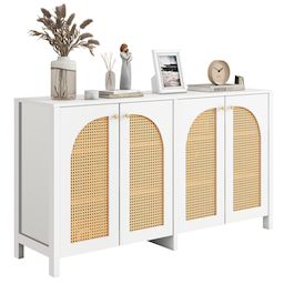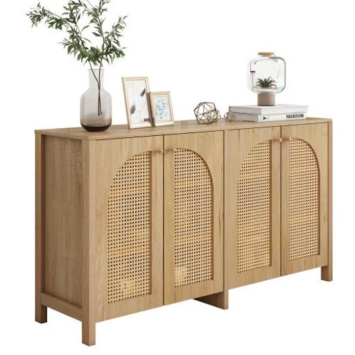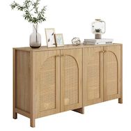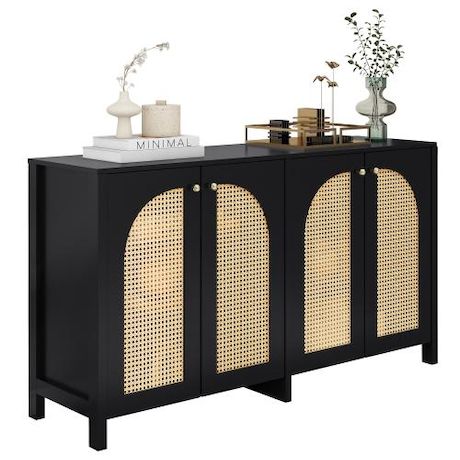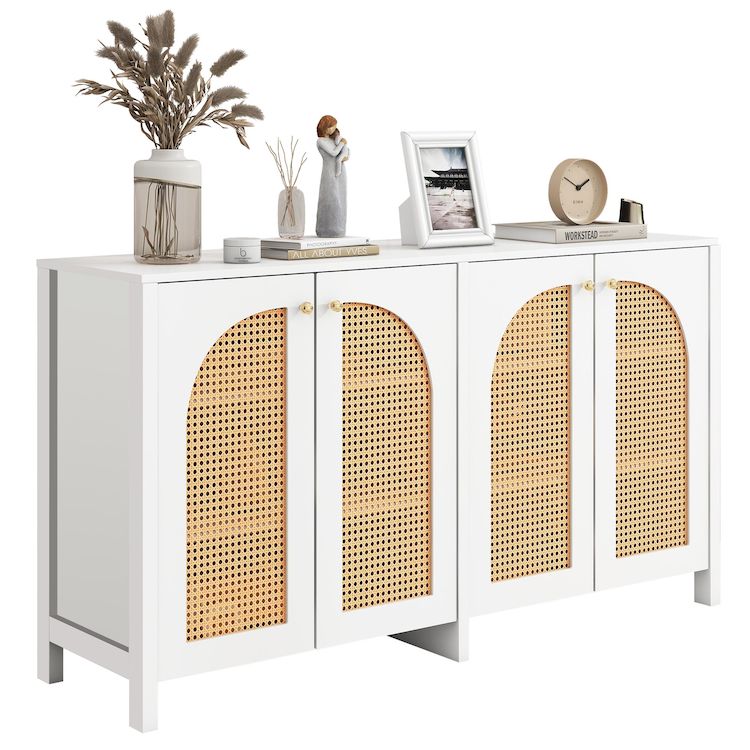 DESIGN UNIQUE ET ÉLÉGANT : Quatre portes incurvées en faux rotin rendent l'ensemble de l'armoire encore plus unique et élégant. Les portes perforées assurent non seulement l'esthétique et la respirabilité, mais assurent également le maintien de l'armoire et empêchent les objets de tomber. Les poignées des portes d'armoires sont en métal, ce qui augmente la résistance à l'usure.