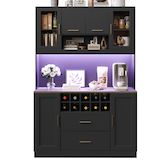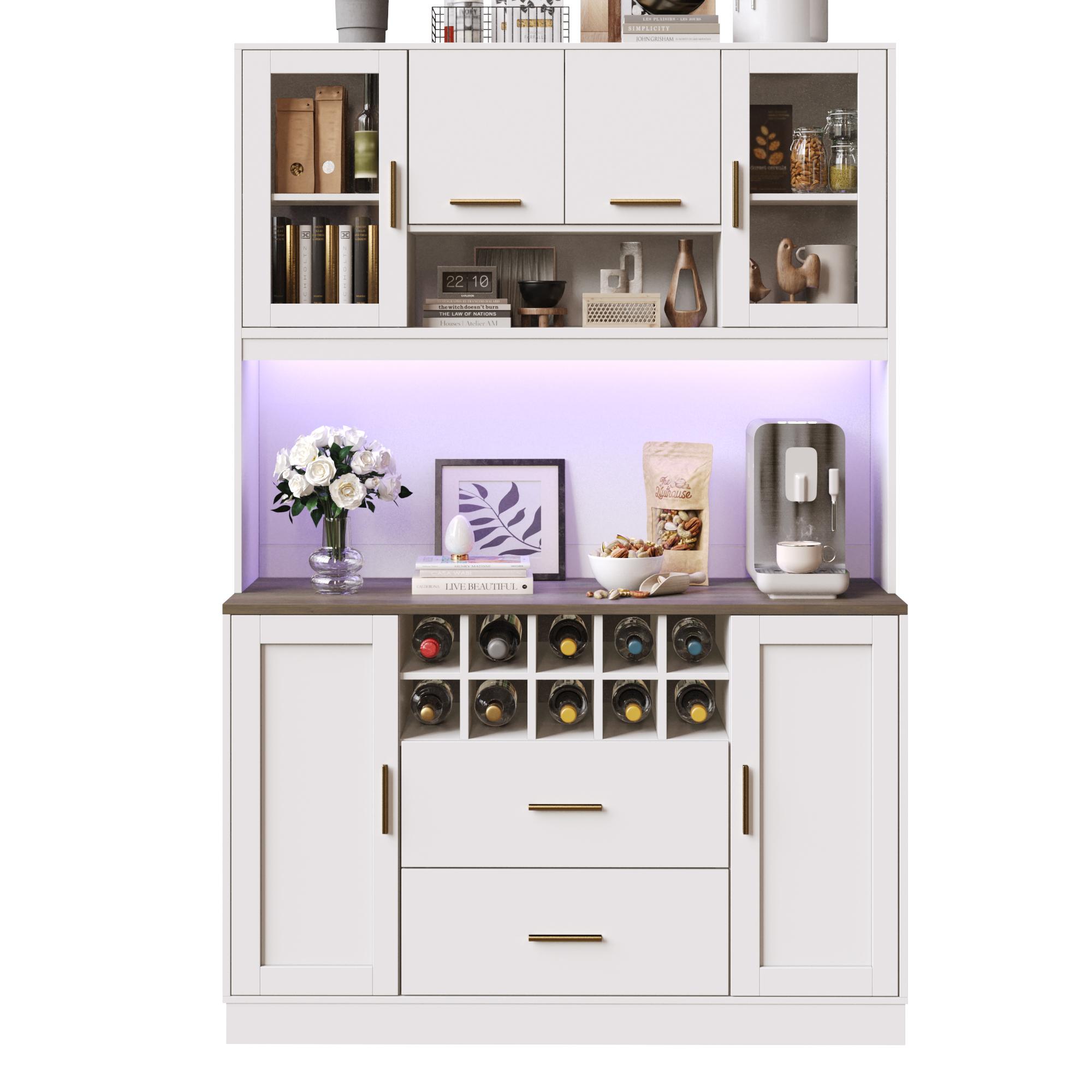 Grand espace de rangement : Ce meuble indépendant à six portes répond à de nombreux besoins de rangement. De plus, ses tiroirs spacieux et son casier à bouteilles offrent un espace de rangement flexible pour divers objets. Le grand plan de travail plat, à une hauteur idéale, est parfait pour ranger les objets du quotidien ou les objets décoratifs.