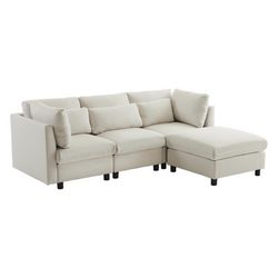 Canapé Angle Fixe Méridienne Réversible Lin Gris