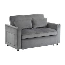 Canapé Convertible 2 Places Avec 2 Porte-gobelets Velours Gris