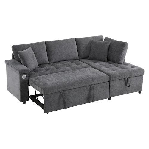 Un compartiment de rangement ouvert est situé à l'intérieur de l'accoudoir du canapé pour ranger livres, magazines et autres objets pratiques. Il est également équipé d'un porte-gobelet et d'un port de charge USB. Cela vous permet d'avoir vos boissons à portée de main tout en regardant la télévision ou en lisant, et de recharger vos appareils à tout moment pour profiter pleinement de votre temps libre.