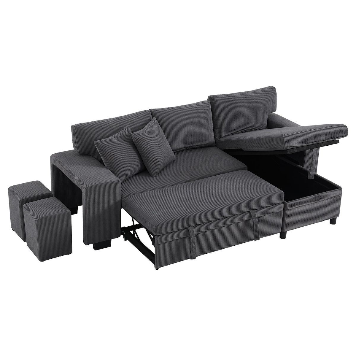 Espace de rangement dissimulé : Deux sièges multifonctionnels pour s'adapter à différents contextes , Un espace de rangement dissimulé sous l'assise permet de ranger livres, couvertures, oreillers et autres objets du quotidien, pour un gain de place et une utilisation pratique.