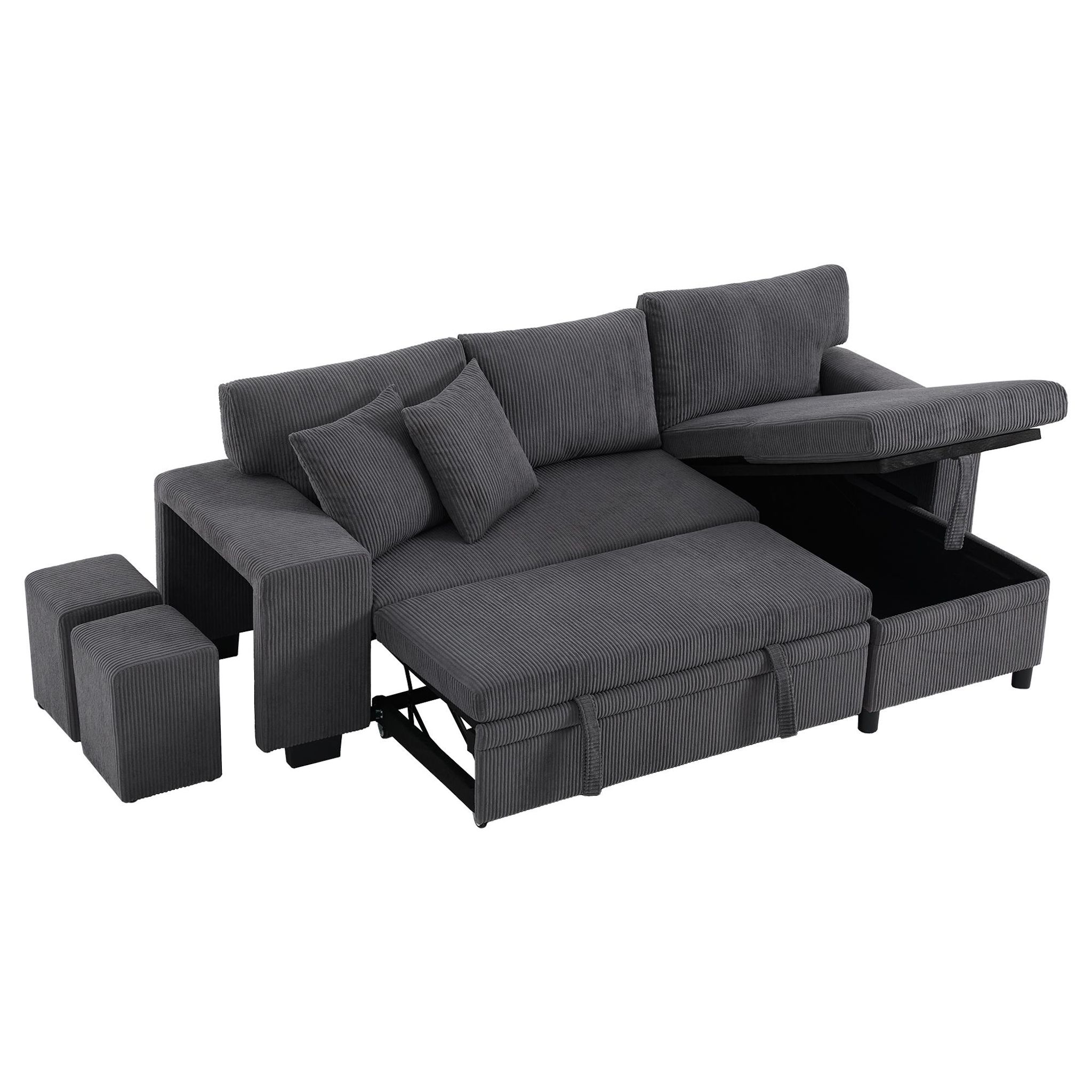 Canapé d'angle panoramique convertible 3 pl velours côtelé coffre de rangement