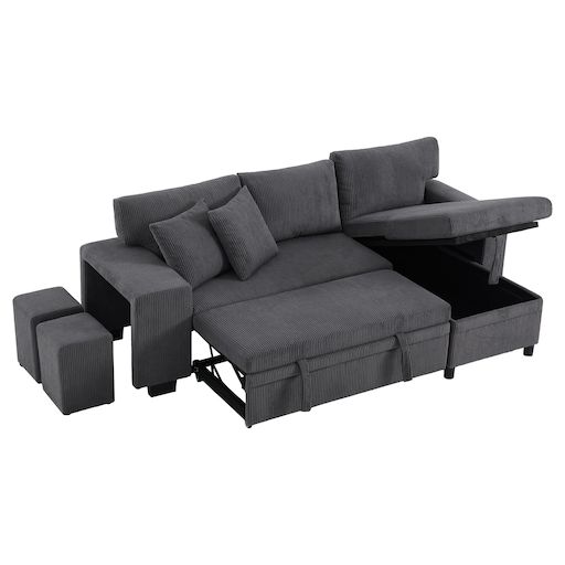 [Canapé multifonctionnel] Ce canapé-lit allie couchage, espace de rangement et deux ports de charge USB + Type-C, conçu pour un intérieur moderne.