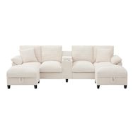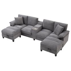 Design pratique : Le canapé est équipé de deux ports de chargement USB, vous permettant de recharger vos appareils tout en vous relaxant. Un porte-gobelet en acier inoxydable maintient votre boisson en place, pour une détente sans interruption. Des compartiments de rangement dissimulés permettent de ranger soigneusement des objets comme les télécommandes.