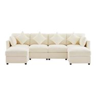 Canapé d'angle panoramique fixe 6 places tissu