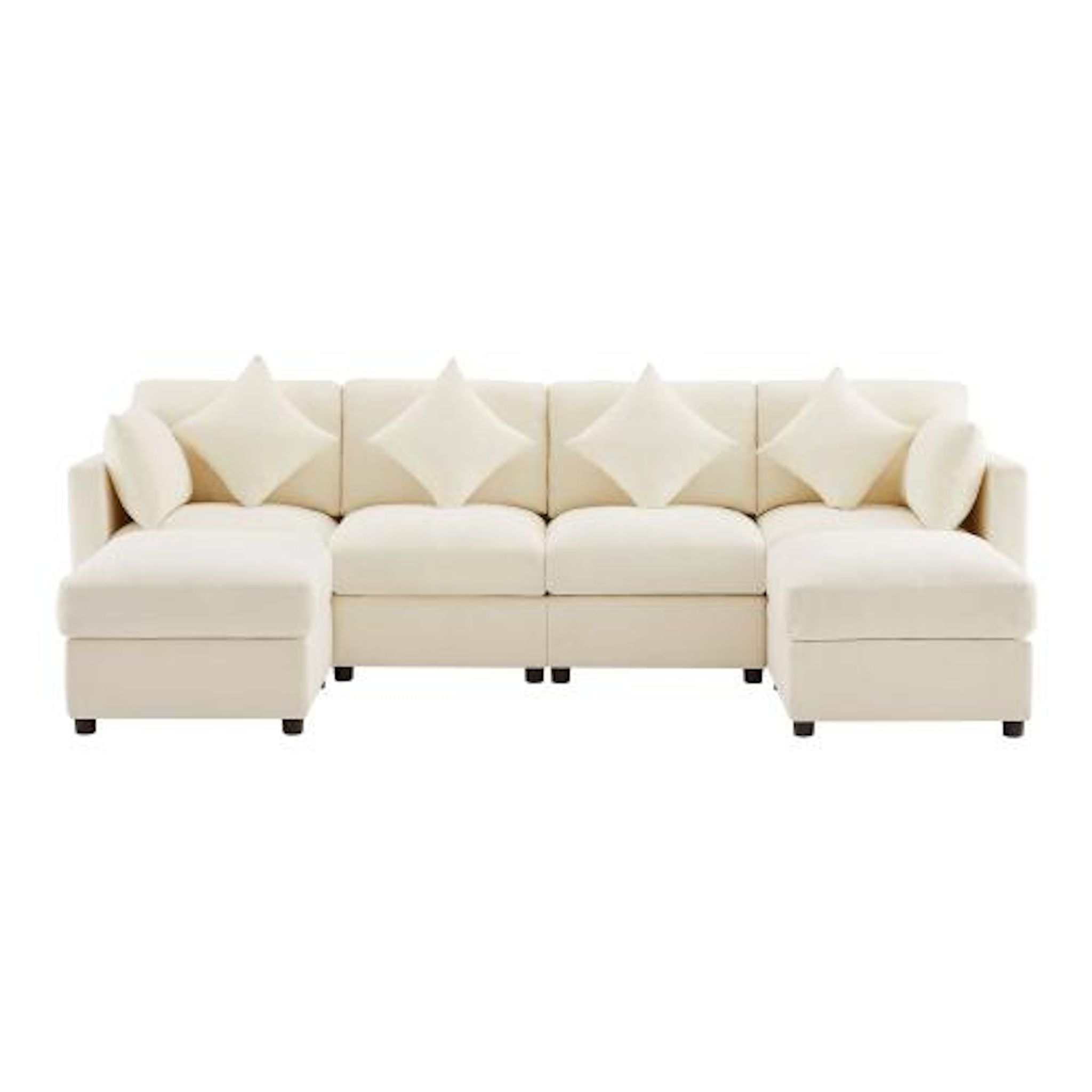 Le canapé est livré avec quatre coussins moelleux en coton PP, parfaits pour se détendre en lisant ou en faisant une sieste. Que vous soyez assis pour lire, faire une sieste ou vous relaxer, ces coussins ajoutent une touche de confort et de douceur à vos moments de détente.