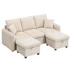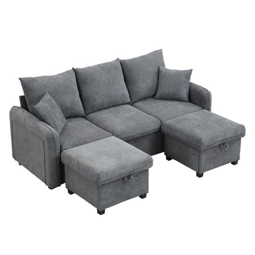 Utilisation multifonctionnelle : canapé trois places + 2 repose-pieds de rangement peuvent être librement combinés - se transforme en chaise longue en L ou en lit simple en quelques secondes, répondant à une variété de besoins tels que recevoir des invités, se détendre et dormir.