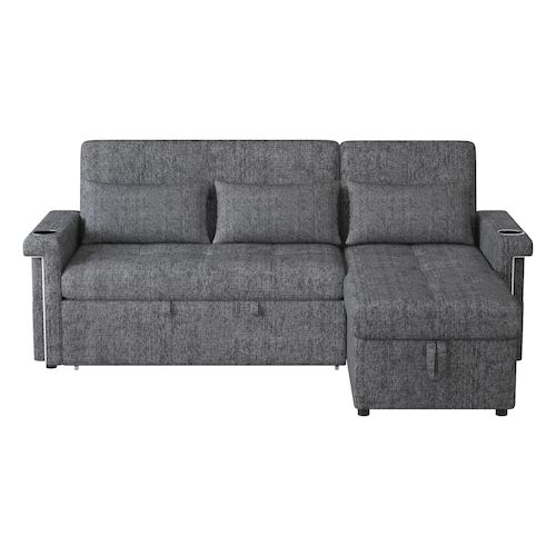 Détails pratiques : Des porte-gobelets intégrés aux accoudoirs permettent de poser votre café ou vos boissons fraîches , des compartiments de rangement latéraux sont parfaits pour les télécommandes, les smartphones ou les magazines , et la méridienne offre un grand espace de rangement, idéal pour les couvertures ou les coussins. Le canapé est également équipé de ports USB et USB-C intégrés, vous permettant de recharger vos appareils directement.